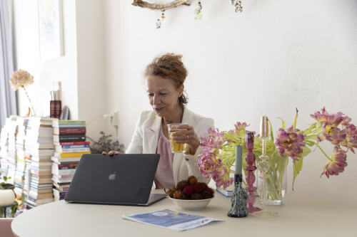 Rond 2019–2021 kantelde er iets. Online boekhoudpakketten werden toegankelijker en ik zag: dit kun je leren, en wie zelf boekt, staat dichter bij de werkelijkheid van het bedrijf. In 2021 mailde ik mijn klanten: ik ga het anders doen, je kunt meereizen, dan leer ik het je. Zo ontstond Moeiteloos Overzicht: jij doet je administratie zelf, ik kijk met je mee. We werken via Zoom; met schermdelen doen we alles wat je anders aan tafel zou doen. Moneybird is mijn favoriete gereedschap omdat het vriendelijk en logisch is, maar het draait altijd om wat bij jóu past.